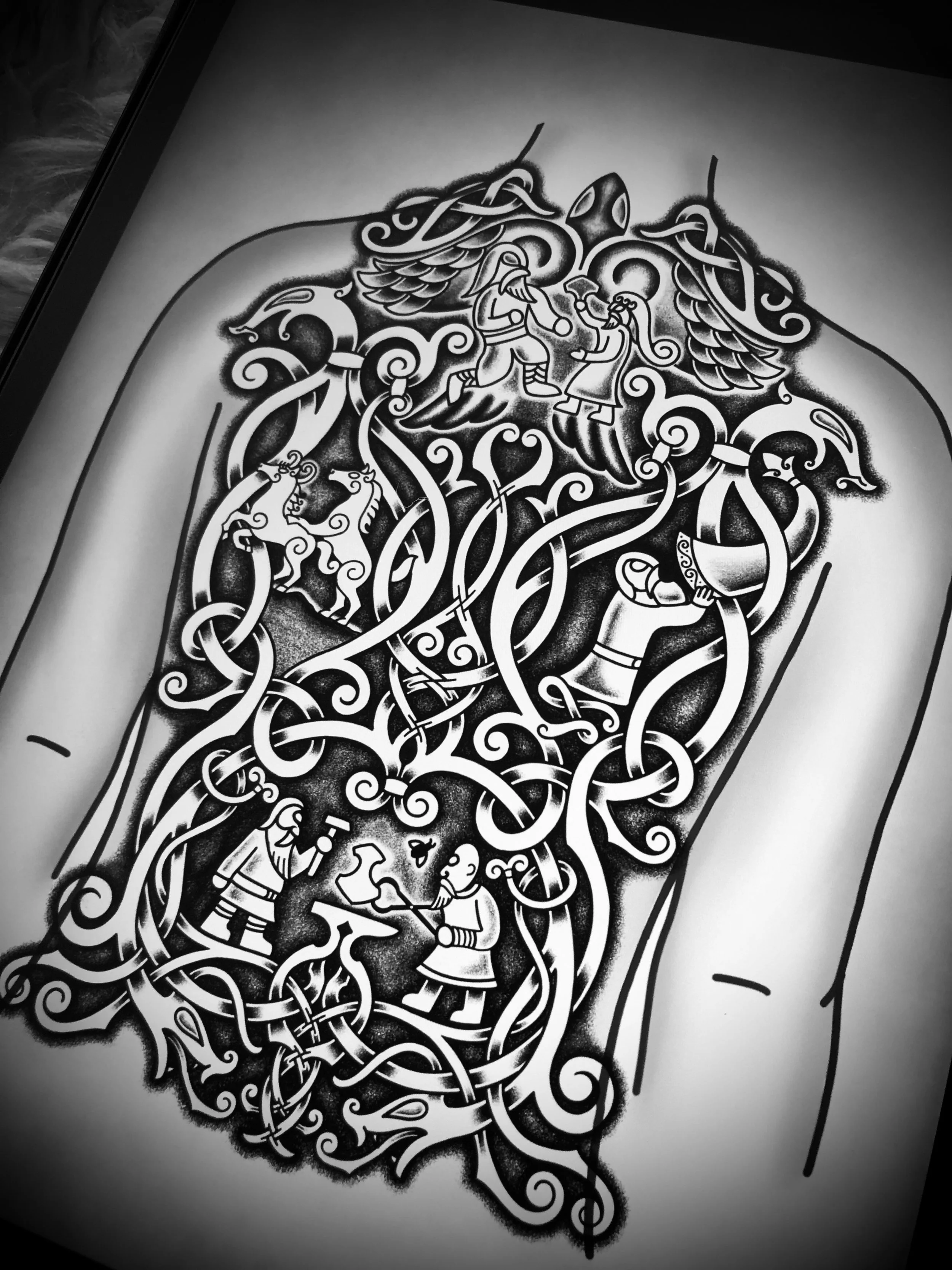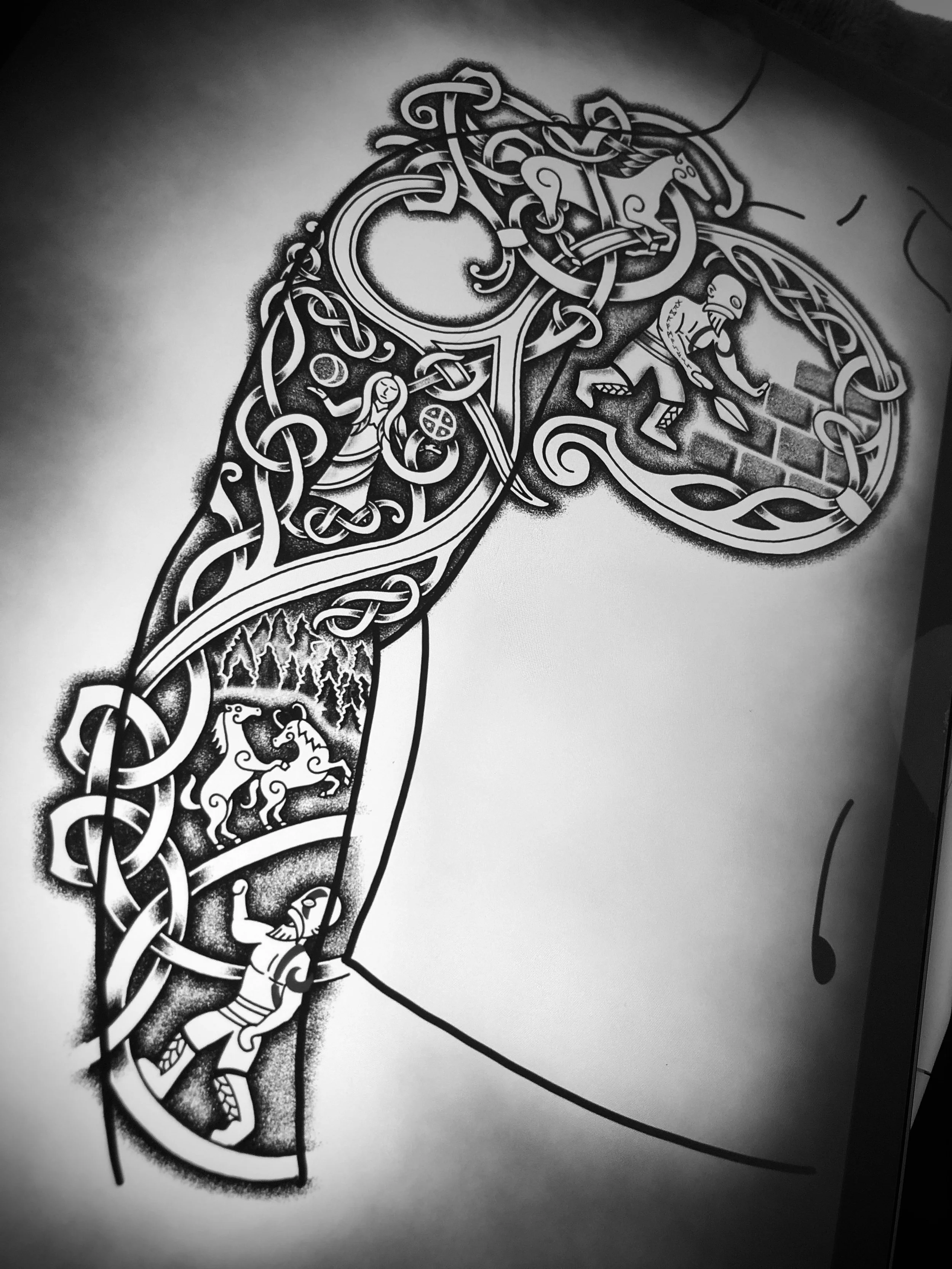 Viking raids and expeditions also brought new artistic and cultural influences later on in the Dark Ages and Nadine’s interest in artwork from this period was later reinforced by a visit to the York museum where she was in awe of the sheer intricacy and detail on items like the Coppergate Helmetand this became the catalyst for Nadine to try her hand at knotwork.
