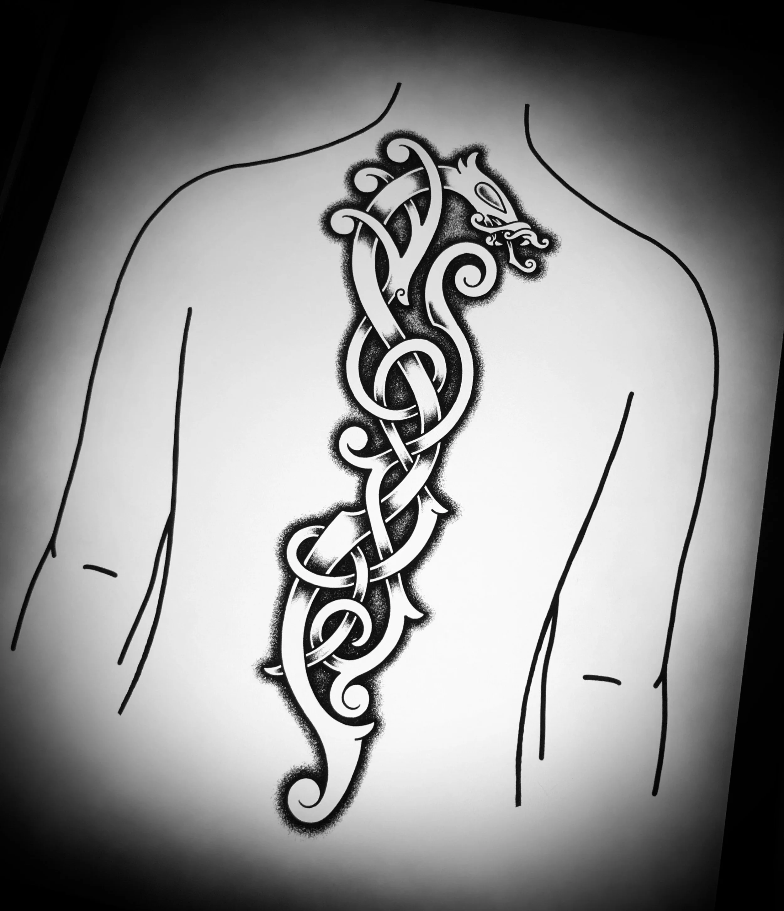 For this design, Nadine was asked to keep a certain level of symmetry down the spine as well as to keep the design within the t-shirt neckline so it can remain hidden. We understand that for a lot of jobs and careers that visible tattoos still can be a bit taboo and we are more than happy to work within any such requirements.